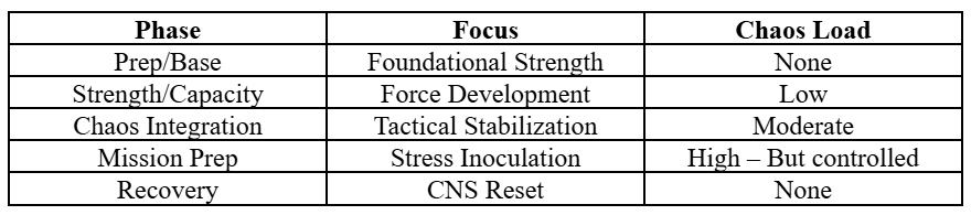 In a tactical population where musculoskeletal injuries account for the highest non-combat medical limitation and attrition rates, chaos training—applied correctly—becomes not only a performance tool but a force protection tool.